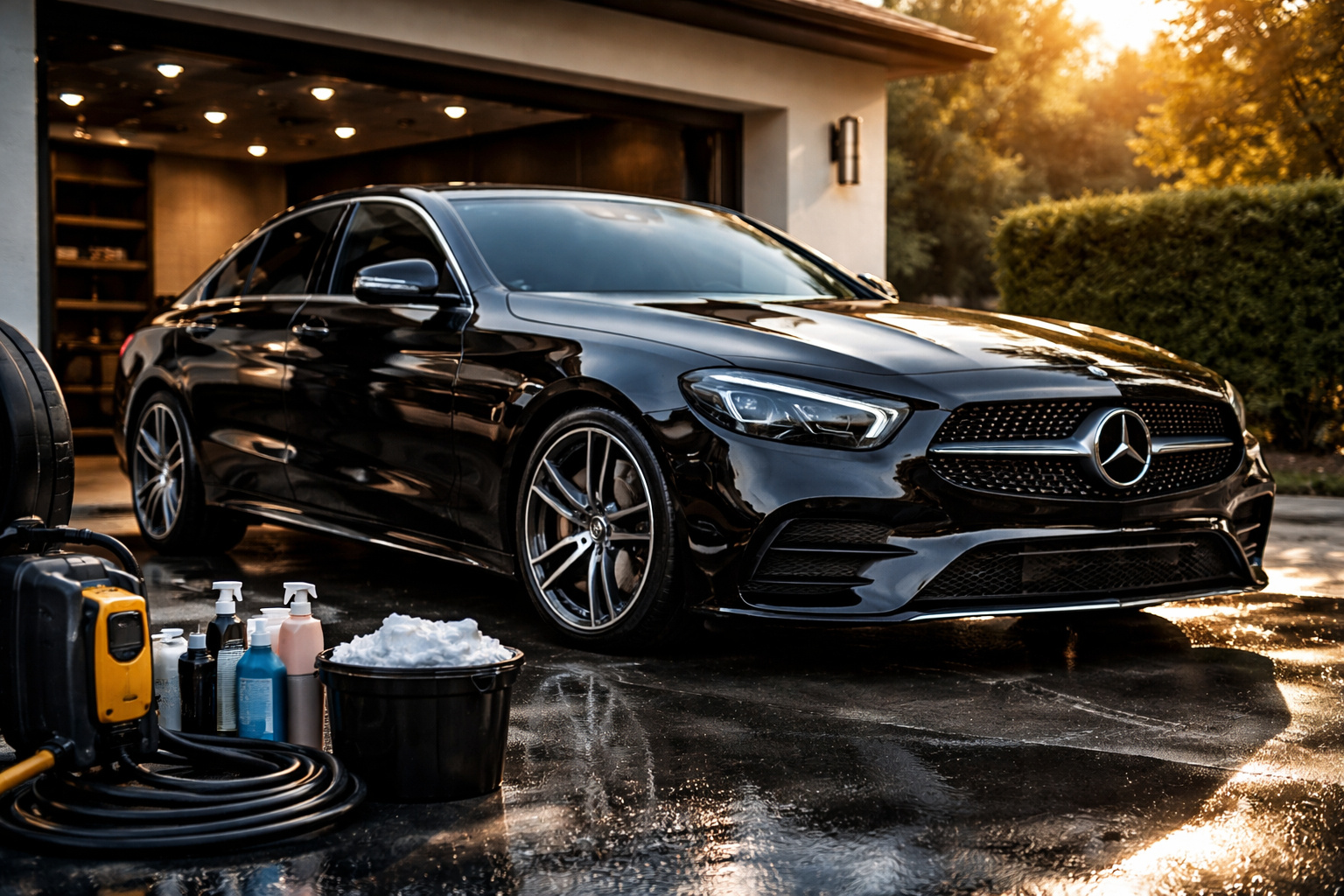 Thorough exterior wash including hand wash, wheel cleaning, wax protection, and drying to restore shine and protect your vehicle’s paint.